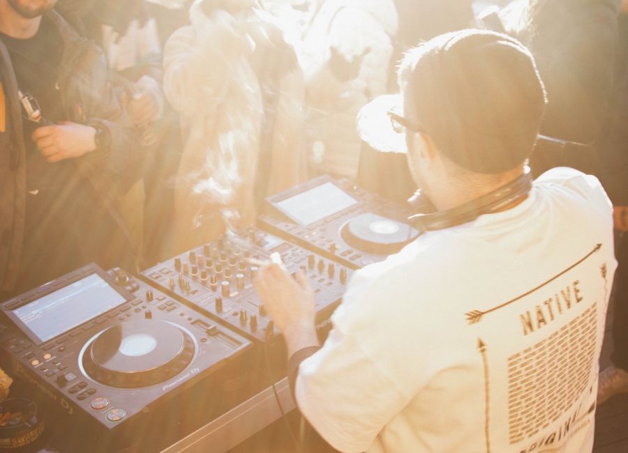 Jeden Samstag im Winter haben wir einen Day-Rave mit DJ auf der Sonnenterrasse, bei schlechtem Wetter sind wir im Indoor-Stübli.
